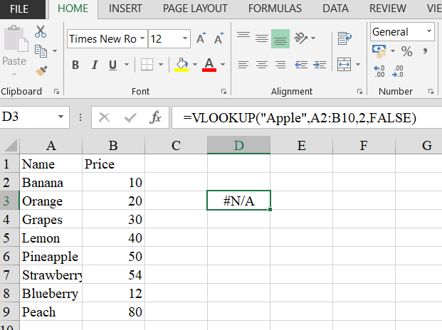 Here, If “Apple” isn’t in A2:A10 then cell will show #N/A.